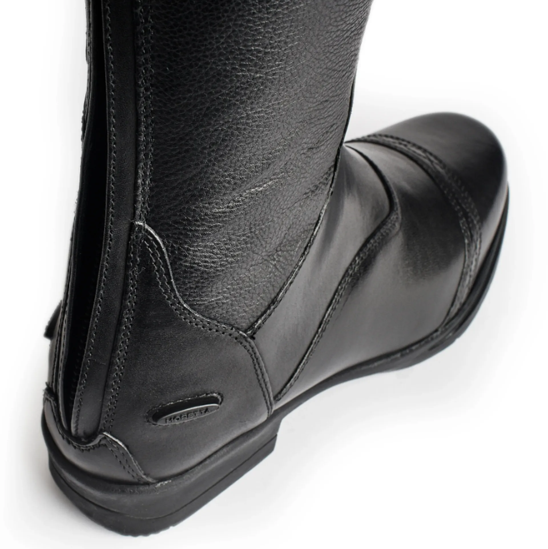 Effortless style is offered by these long riding boots; elegantly crafted using synthetic leather for an easy-care finish. Moretta luisa boots achieve a close leg fit by pairing hard wearing inner calves with softer stretch outer panels that hug the leg. Supportive insoles and shock absorbing soles ensure feet stay energised in the stirrup. Key features: quick clean faux leather. Wickaway stay dry lining. Soft piqued leather inner trim. Stretch mock lace detail. Dressage cut top. Ykk zip. Upper leather zip security tab. Non-slip spur rest. Activeflex insole with impact support system. Moretta shock absorbing rubber outsole. Steel shanks