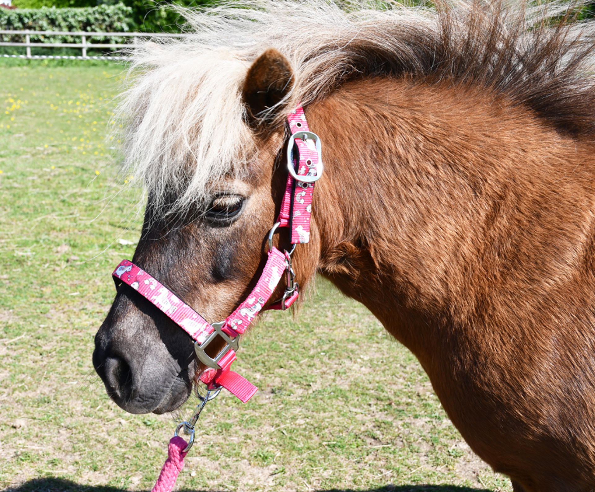 Question(s) answered about Rhinegold Unicorn Headcollar and Lead Rope Set Shetland Raspberry