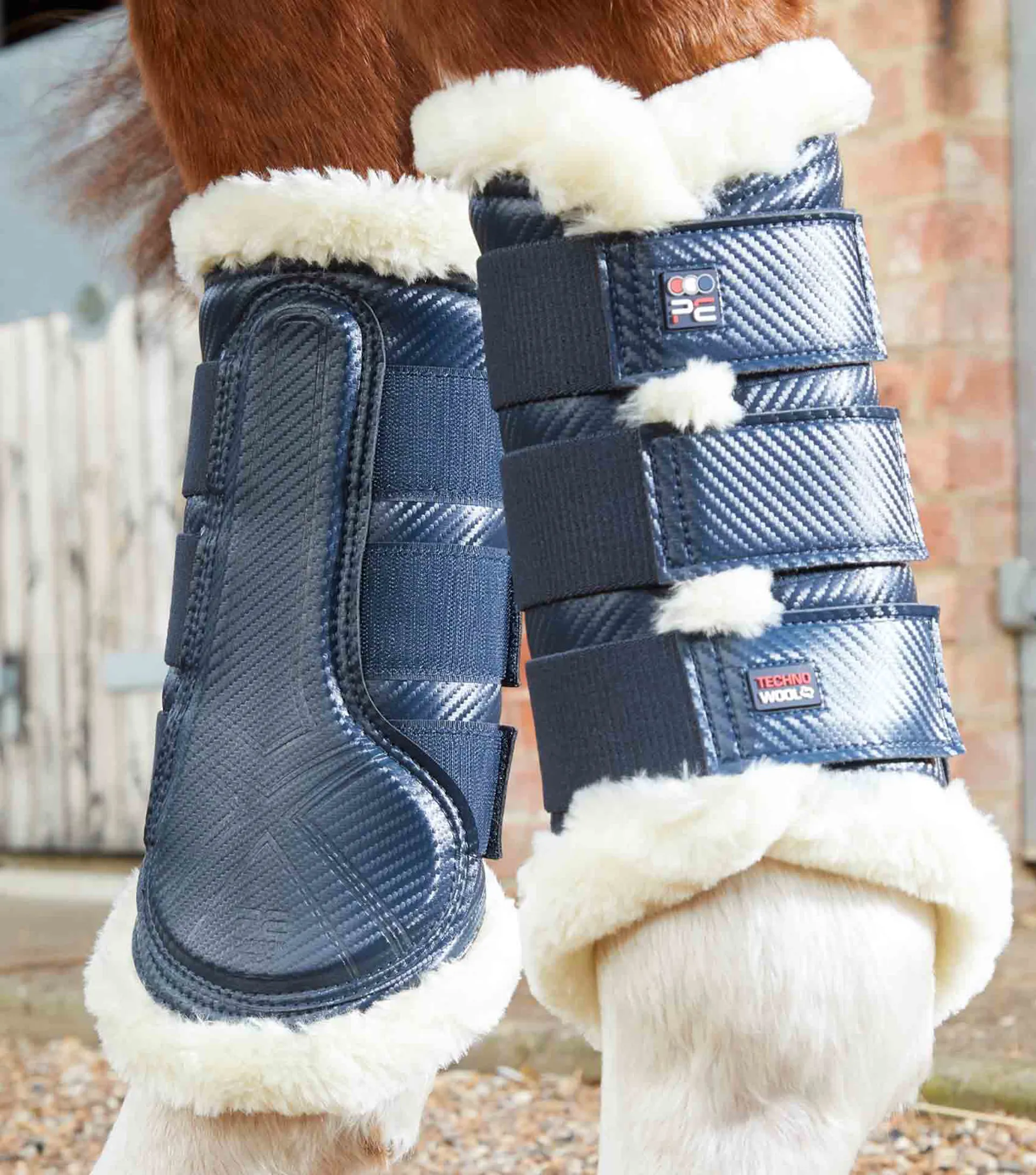 Durable and stylish carbon tech microfibre leather brushing boots with a luxury Techno Wool lining, suitable for daily use or competitions. Our specialist carbon tech microfibre leather is stronger than real leather, stretches and moulds to the horse's leg and retains its original shape. It has the advantage of being lighter whilst offering greater protection, which makes it perfect for the manufacture of horse boots. The carbon tech microfibre leather brush panel is reinforced with shockproof materials to help protect against knocks or strikes caused by the action of a horse brushing.