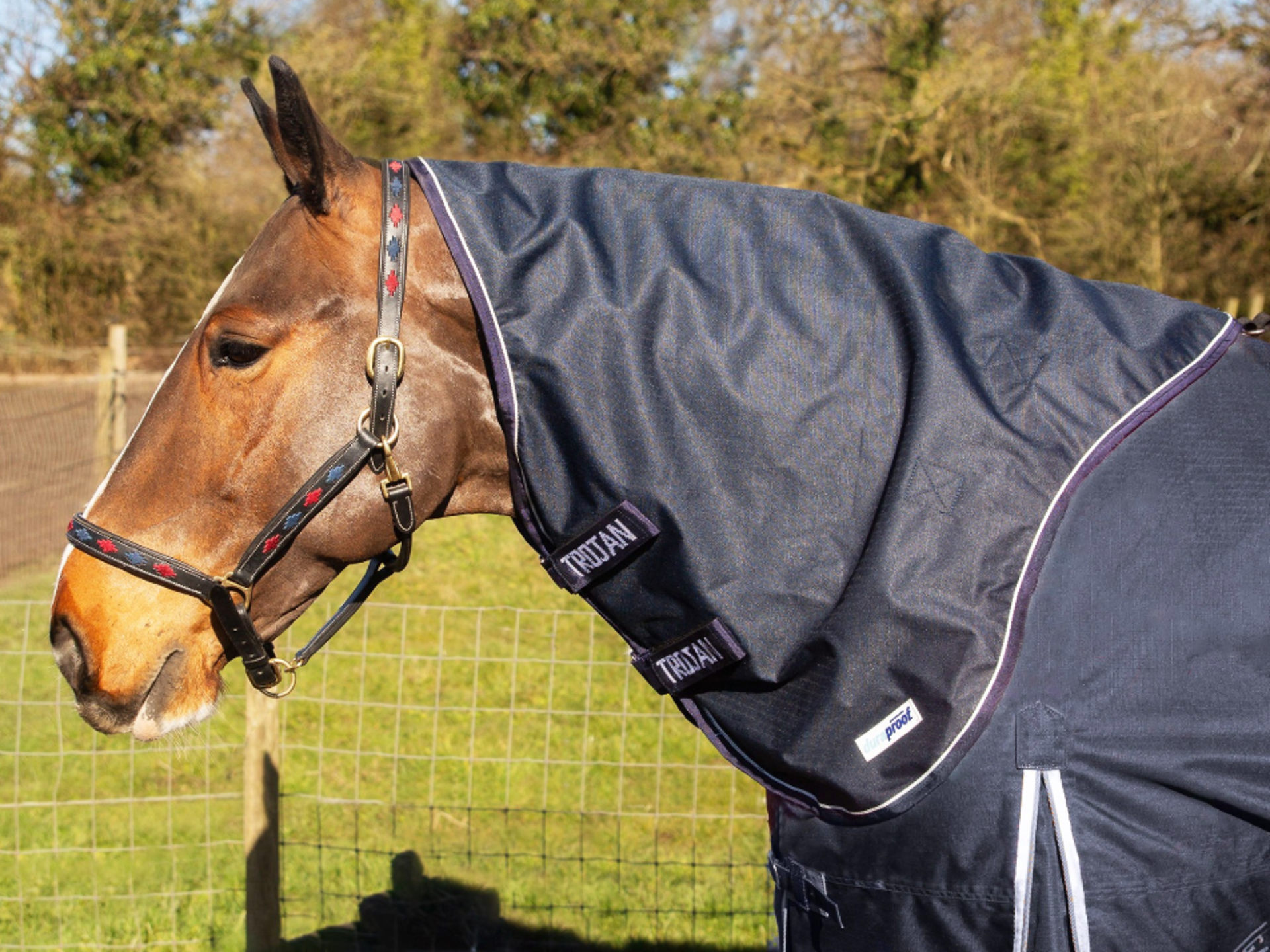 Featuring double sided velcro attachments on the neck and 5 velcro fittings for the rug attachments. Making this neck cover fully functional and well secured.
