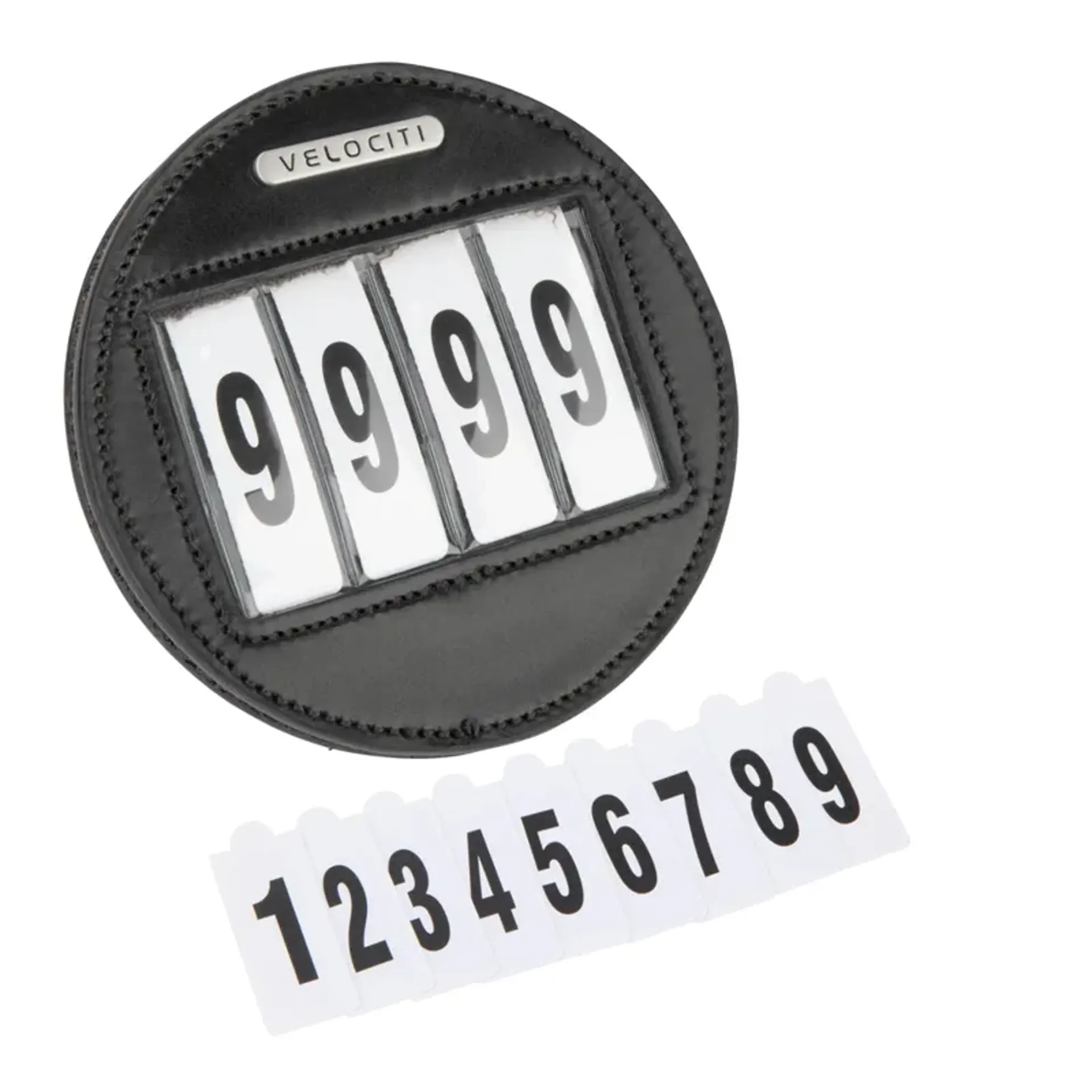 An elegant round shape enhances the leather construction and Velociti badge. The leather unit is supplied with a wipe clean 4 slot sleeve and 3 sets of numbers 0-9.
