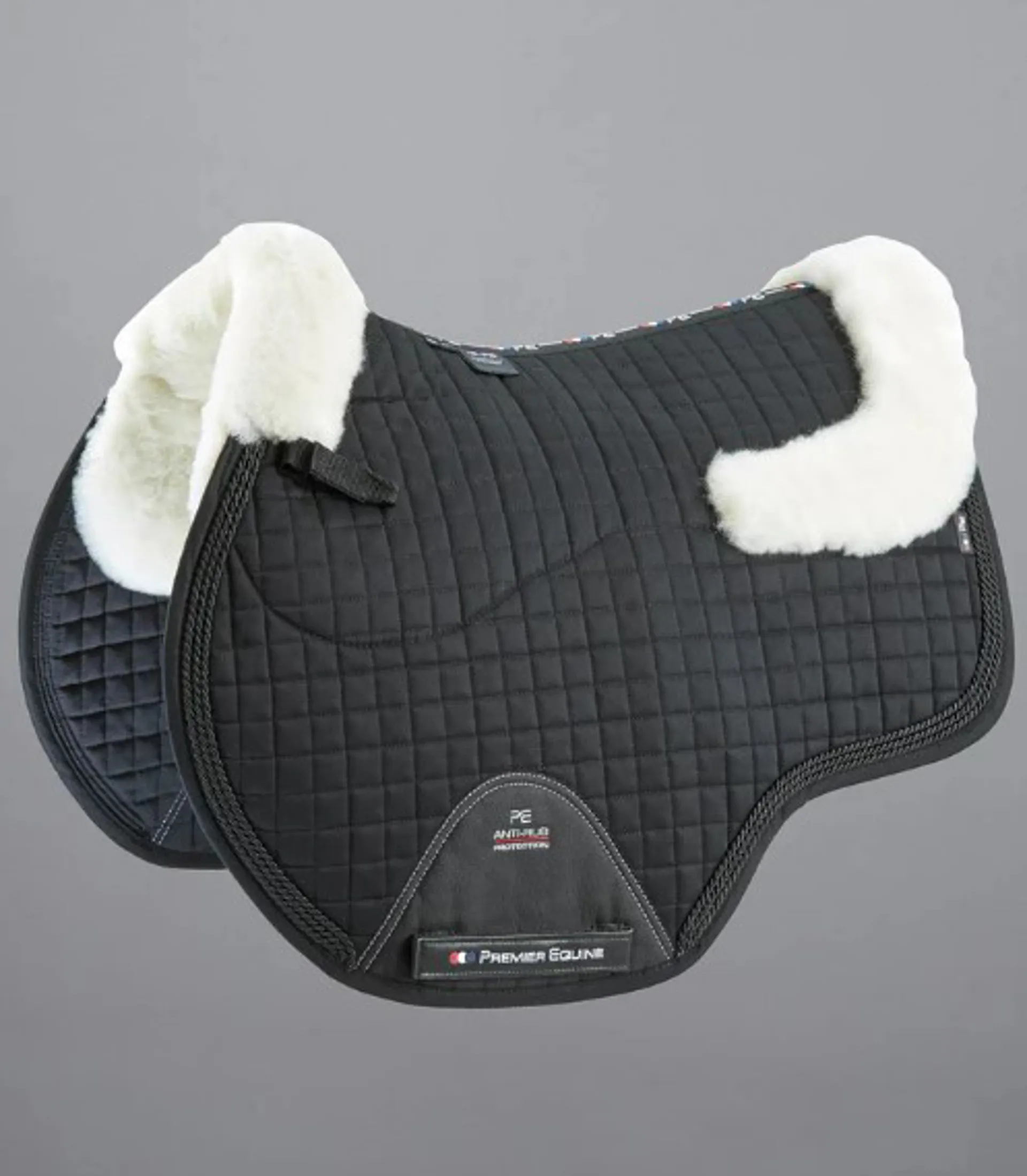 Merino wool knitted onto cotton yarn gives you all the wool you need with no skin attached. The natural fibres of wool are less likely to cause skin reactions or allergies. Wool also has the ability to absorb up to 30% of its own weight in moisture, keeping your horse dry and comfortable under saddle. Real wool is still one of the most technically advanced materials in the world and probably the best you can use under a saddle pad.A 600 denier polyester girth cover provides anti-rub protection and double Velcro adjustable straps and adjustable D loop straps help with girthing. Decorative twisted ropes and a European style cut away hem give a stylish and sophisticated look. A truly high class wool saddle pad suitable for everyday or competition use with the advantage of being fully machine washable.Our new spine design has been developed to reduce pressure points and provide the best protection for your horse. With a larger surface area covering the entire under-seat panel region, the natural fibres will effectively wick away moisture from the skin, distribute pressure evenly and aid shock absorption.Clear-spine designs can cause pressure from seamlines, posing the potential for rubs, sores and uneven pressure distribution. To prevent this, all Premier Equine Merino Wool Saddle Pads no longer feature a clear-spine design to enhance comfort and protect your horse.
