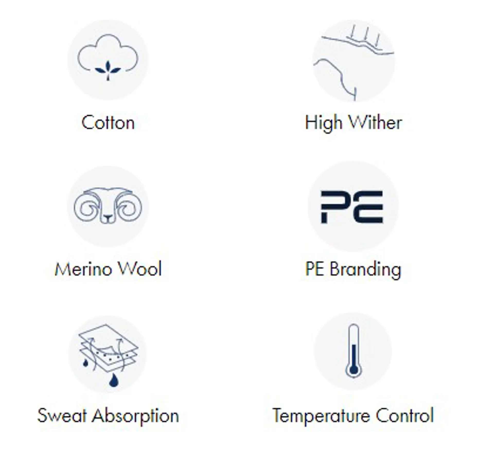 Merino wool knitted onto cotton yarn gives you all the wool you need with no skin attached. The natural fibres of wool are less likely to cause skin reactions or allergies. Wool also has the ability to absorb up to 30% of its own weight in moisture, keeping your horse dry and comfortable under saddle. Real wool is still one of the most technically advanced materials in the world and probably the best you can use under a saddle pad.