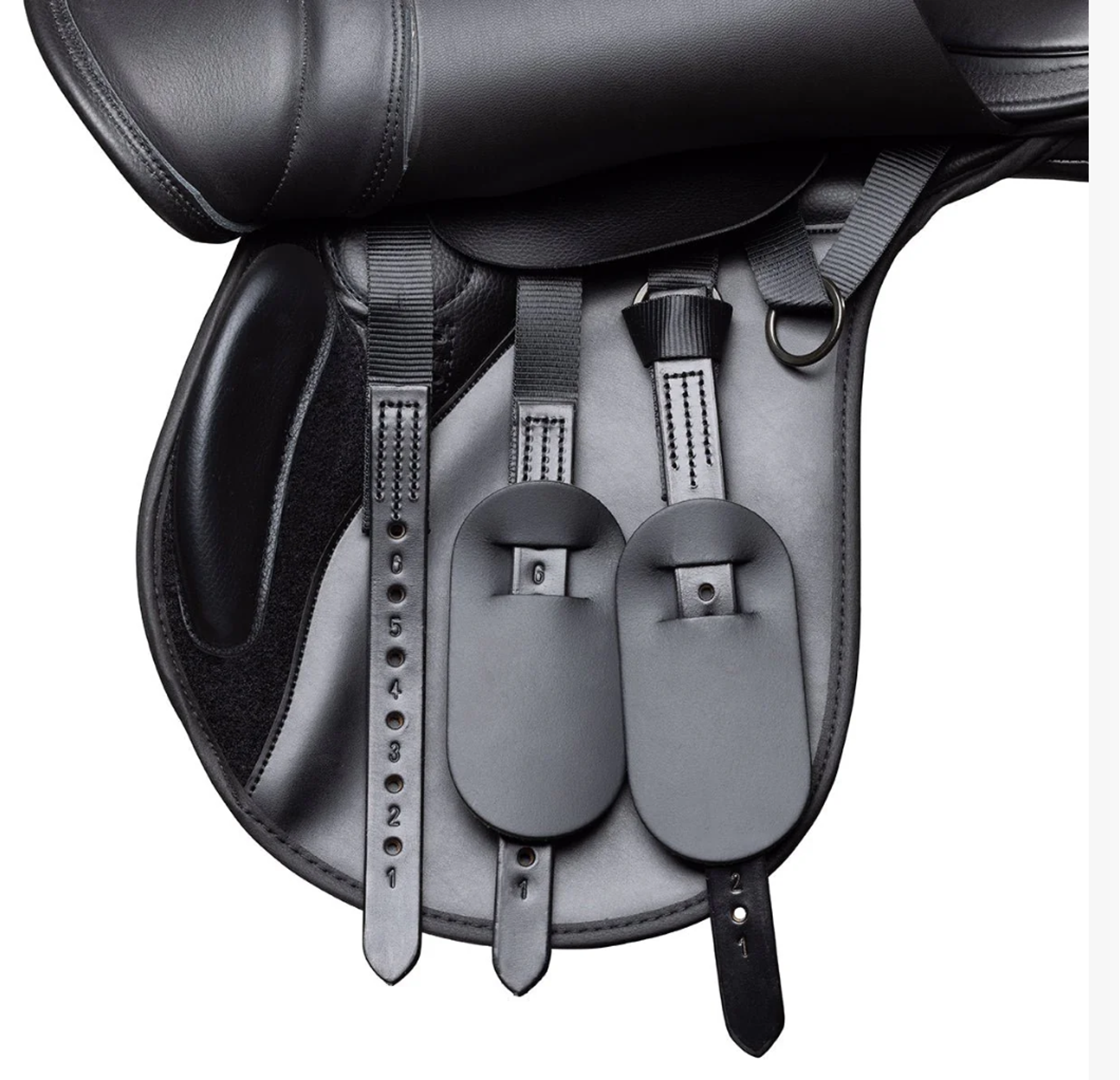The Thorowgood T9 Pony GP Long Leg Saddle is based on the popular Pony saddle but features a longer flap to accommodate riders with longer legs. Designed for comfort and style, it has slimline panels that allow clear communication of leg aids, making it ideal for all Pony Club activities. With two seat sizes, it’s perfect for young children on their first pony, as well as more active teenagers or petite adult riders. The short panel design ensures it fits comfortably on short-backed ponies, while maximising the bearing surface for greater comfort.